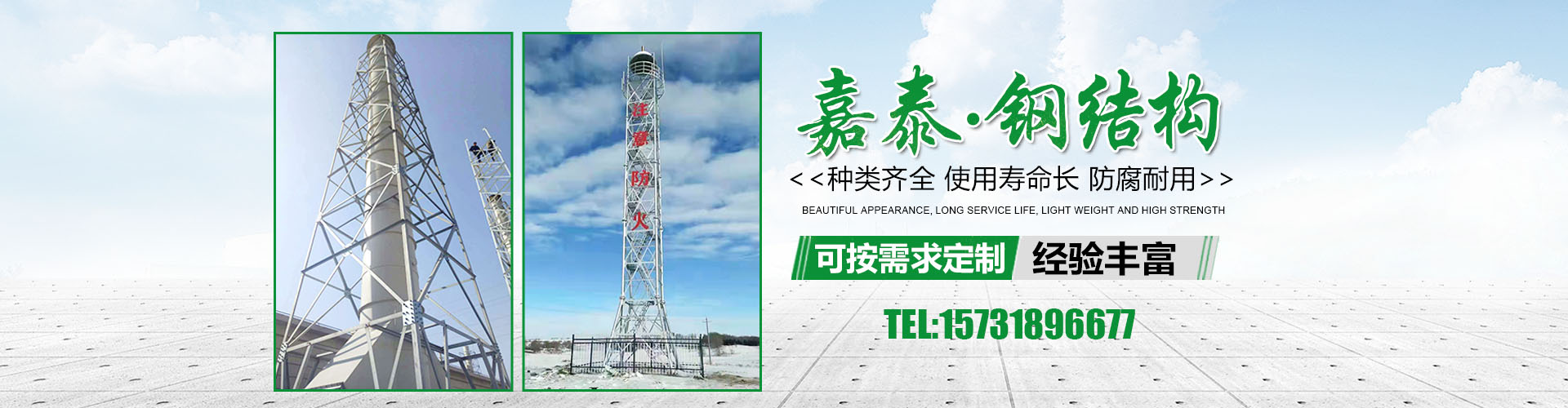 衡水嘉泰鋼結(jié)構(gòu)有限公司位于鐵塔制造之鄉(xiāng)-衡水市景縣廣川經(jīng)濟(jì)開發(fā)區(qū),石德、京九鐵路交匯處,距北京、天津、石家莊、濟(jì)南均在2小 時交通圈內(nèi),交通便利。公司主要產(chǎn)品有:避雷塔、監(jiān)控塔、瞭望塔、消防訓(xùn)練塔、電力架構(gòu)、樓頂工藝塔、廣播電視塔、煙囪塔、測風(fēng)塔 、電力塔、單管塔、雷達(dá)塔、仿生樹塔、氣象觀測塔、路燈桿,一體化基站、ETC龍門架等,是一家集設(shè)計(jì),生產(chǎn),運(yùn)輸,安裝,維護(hù)為一體的廠家。主要服務(wù)于鐵塔公司、通信三大運(yùn)營商、國防通訊,鐵路及森 ......